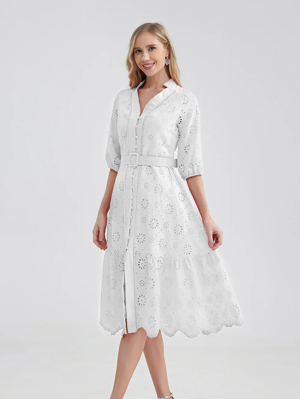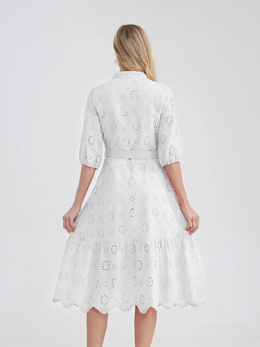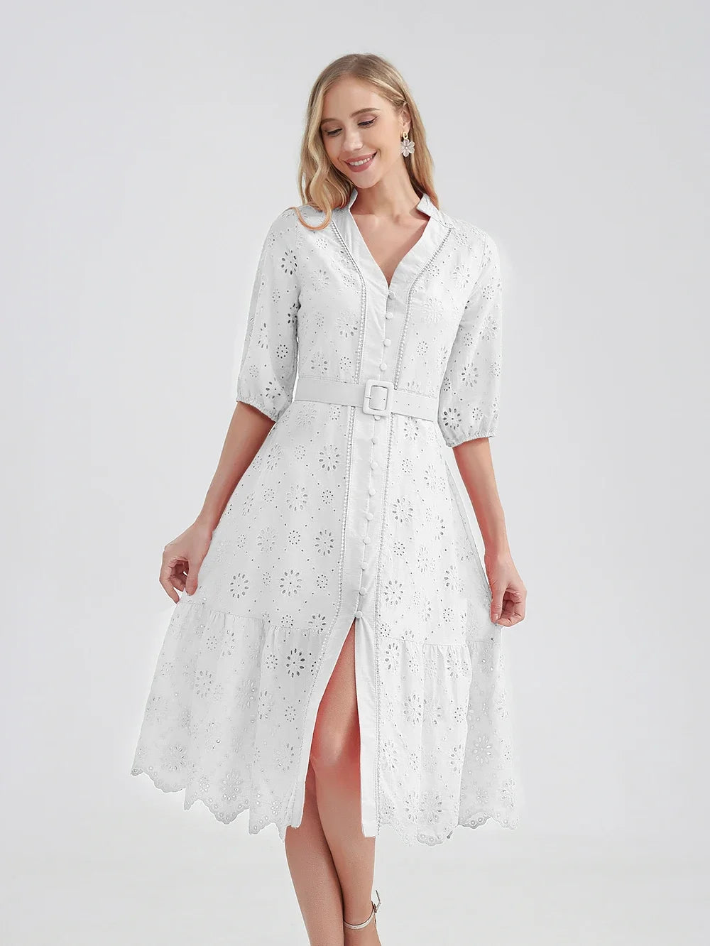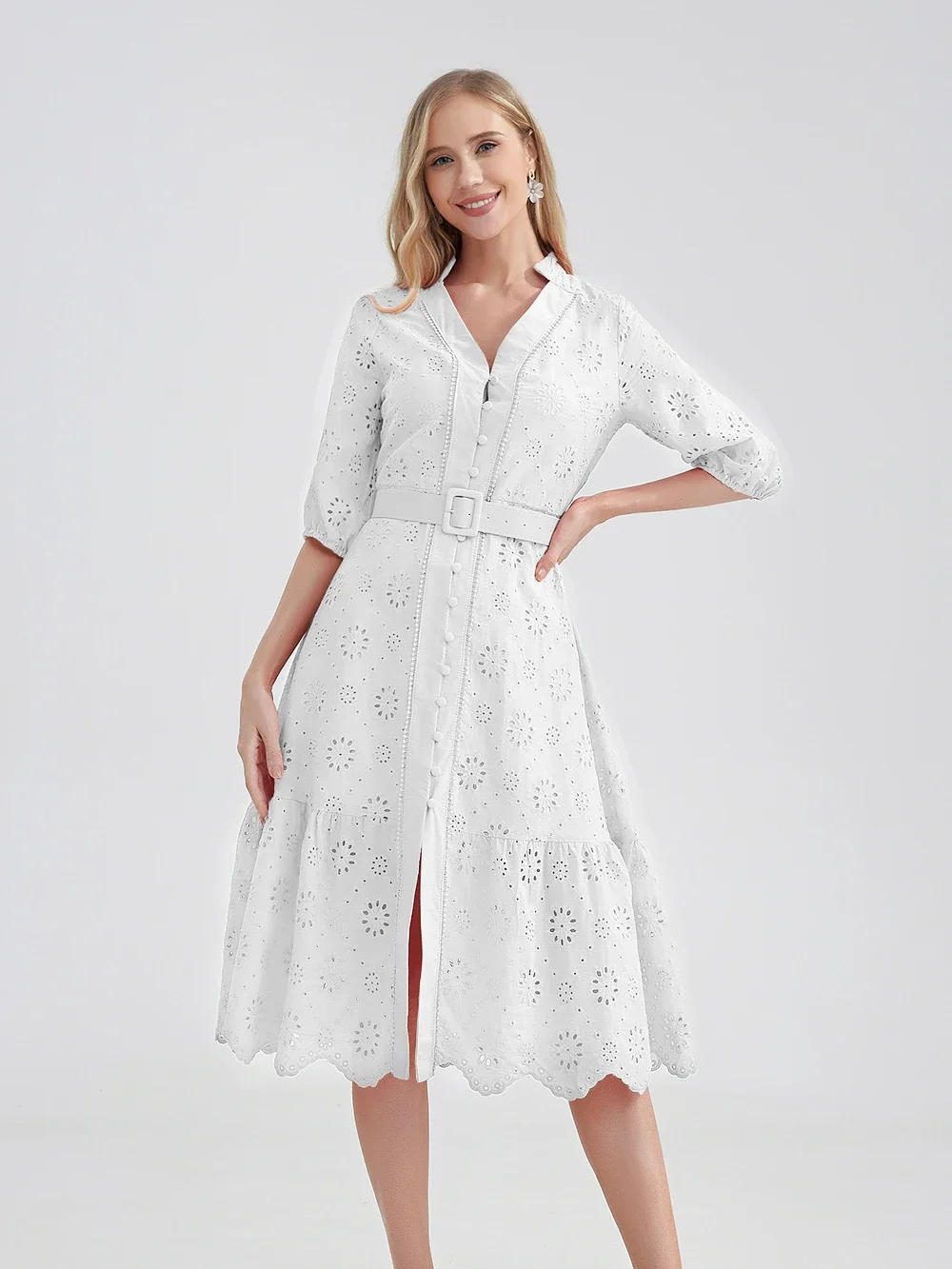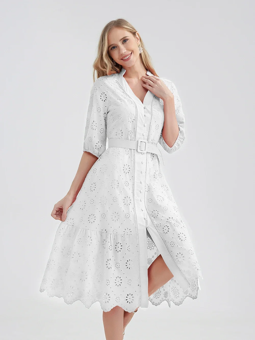 Cotton Hollow Out Summer Dress Women Holiday Perppy Casual High