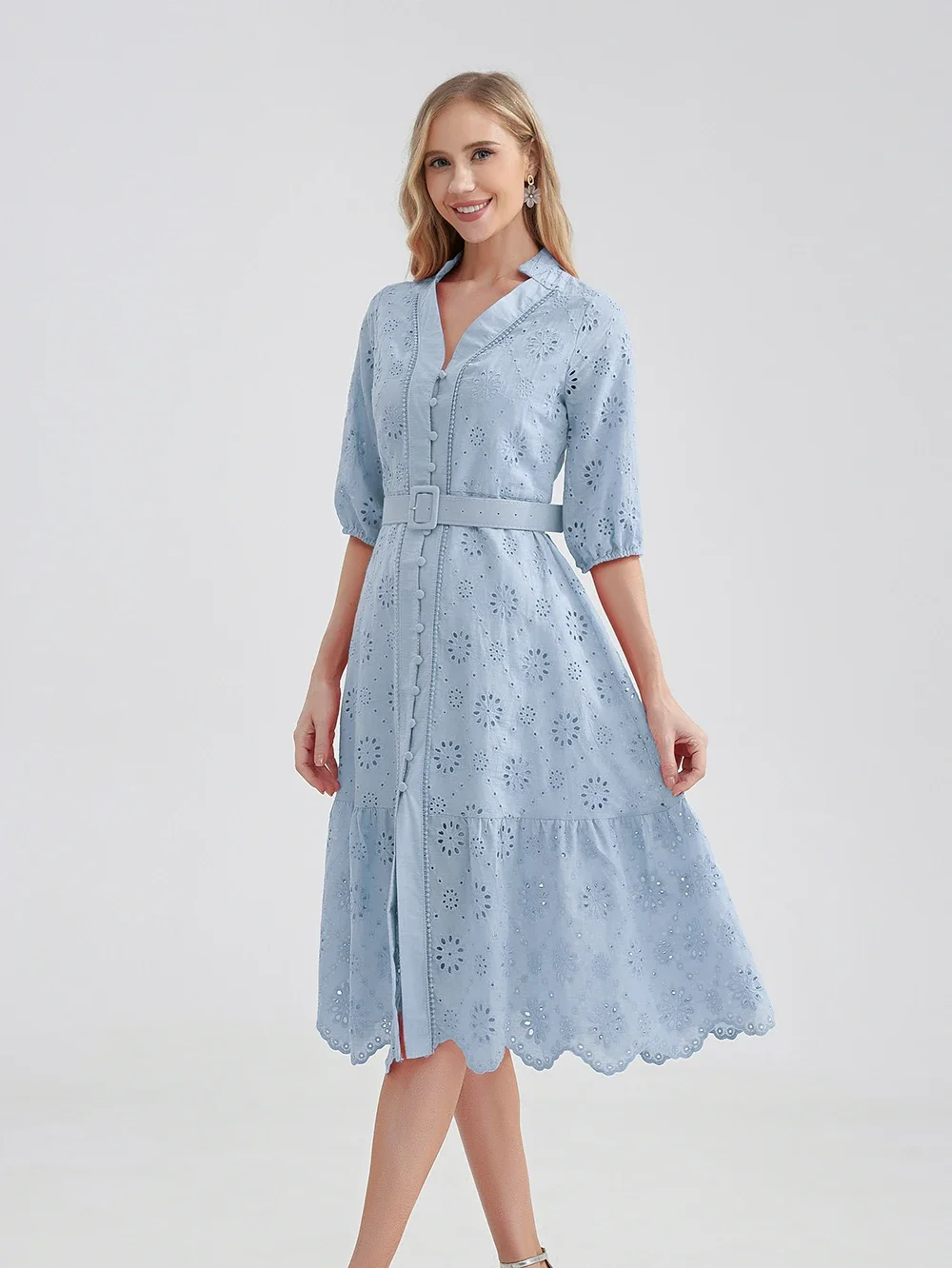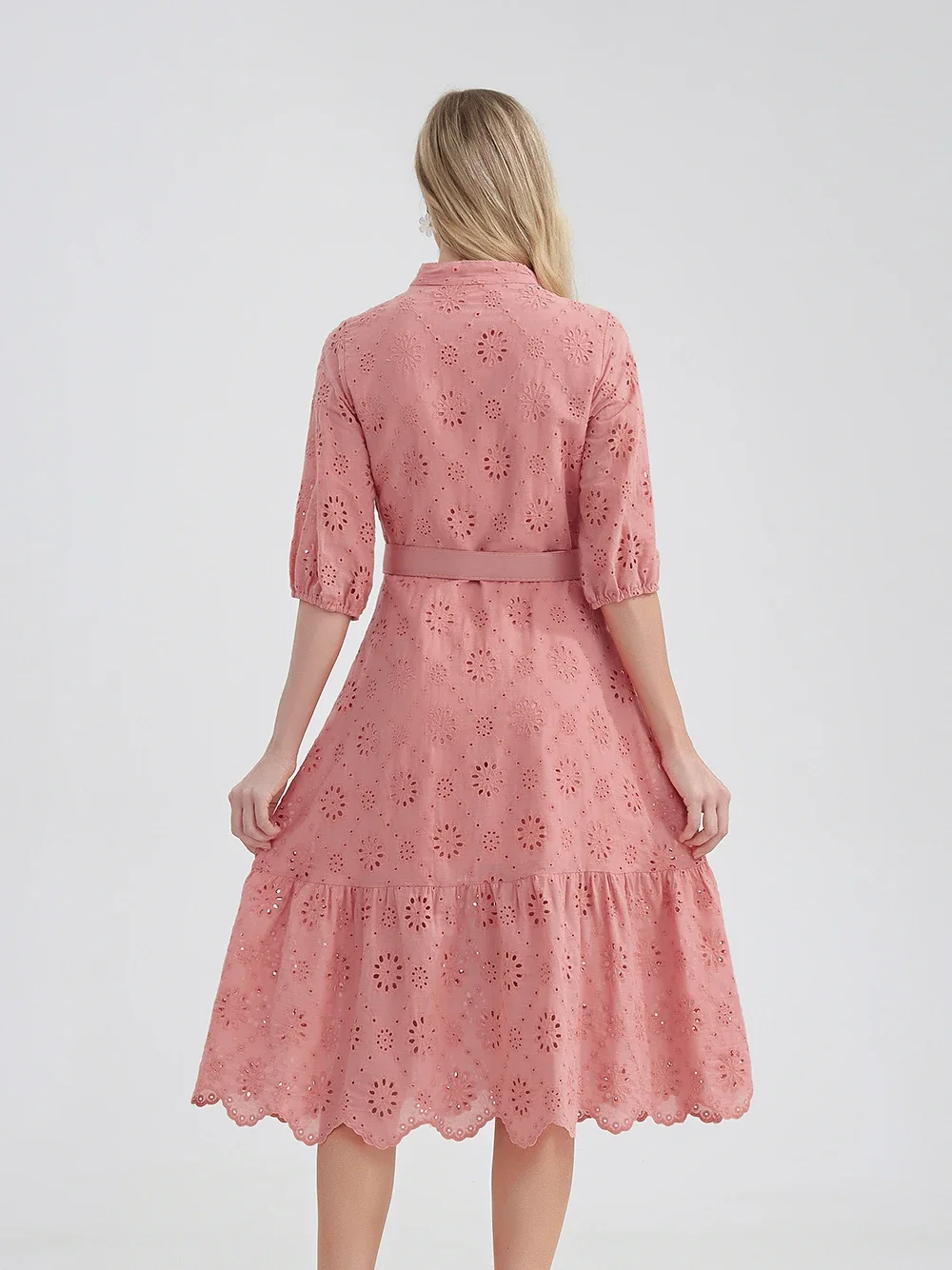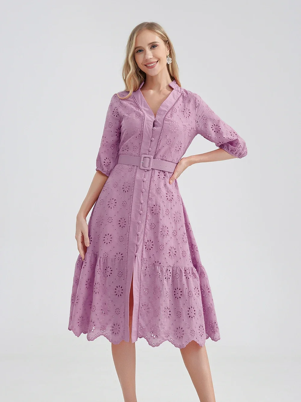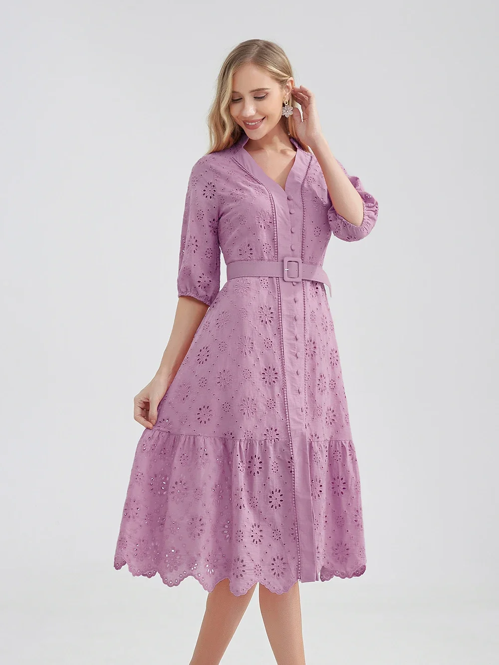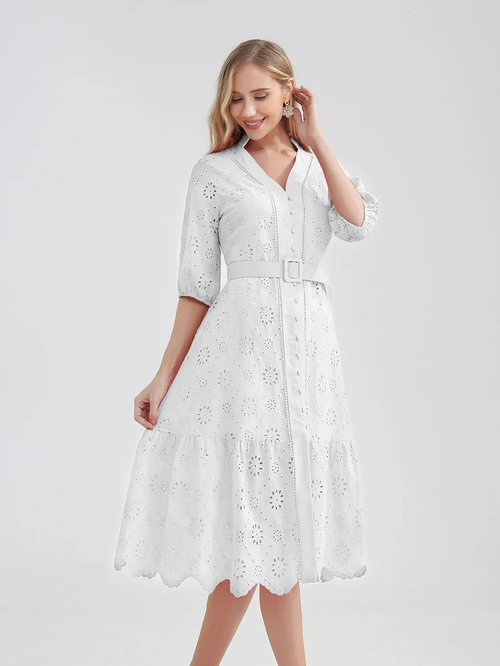 Cotton Hollow Out Summer Dress Women Holiday Perppy Casual High