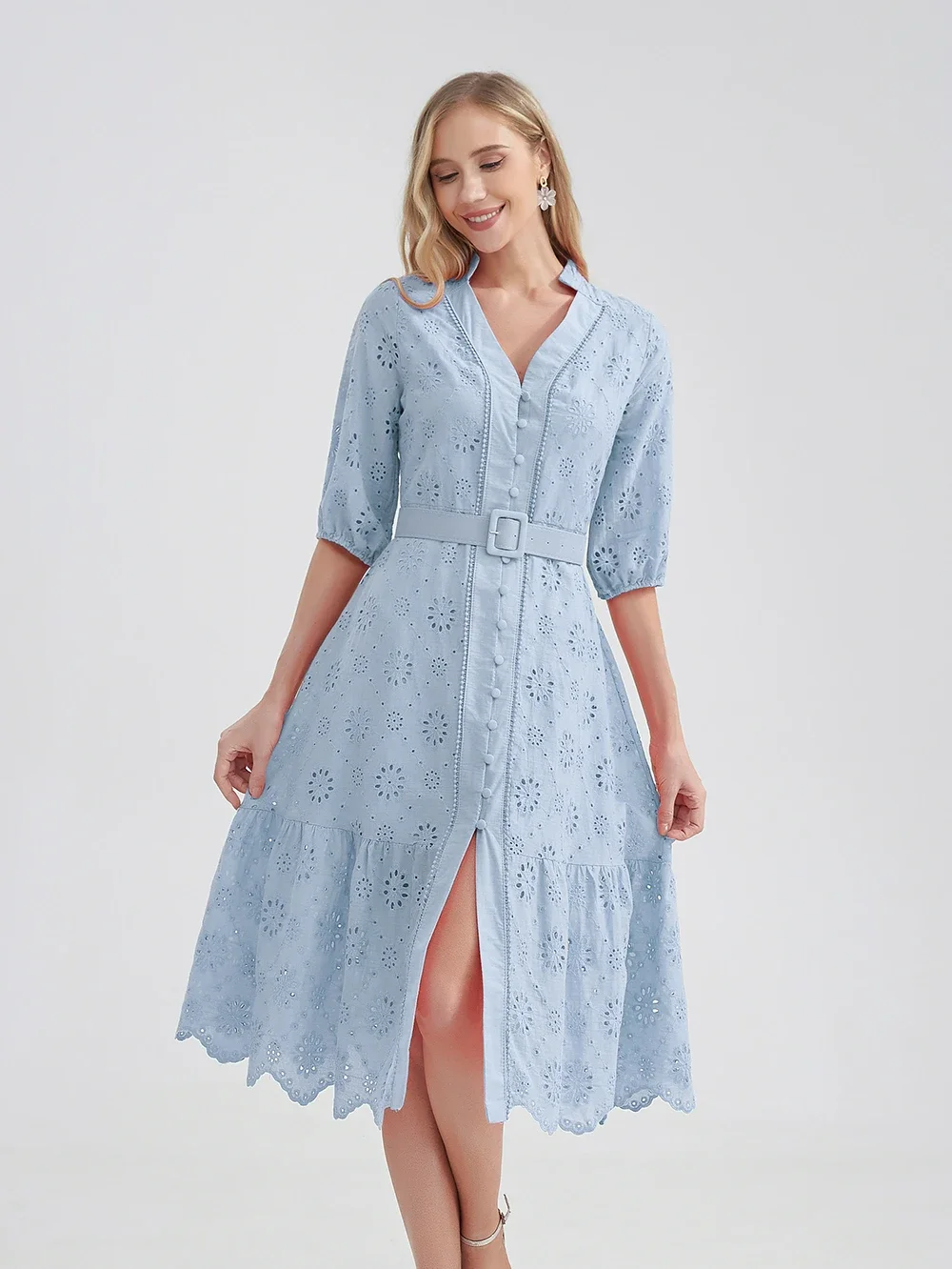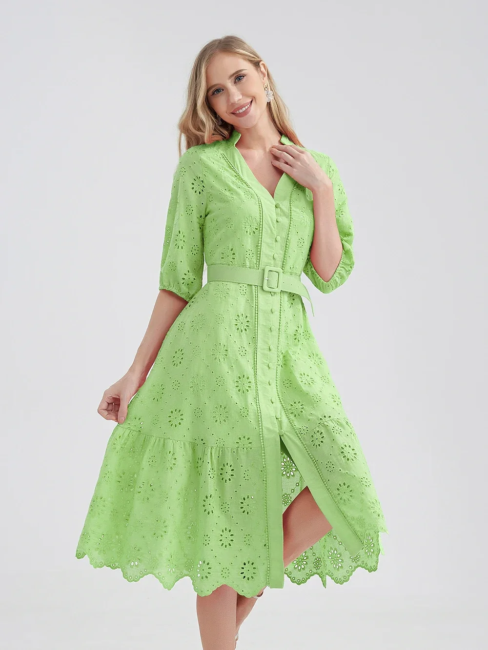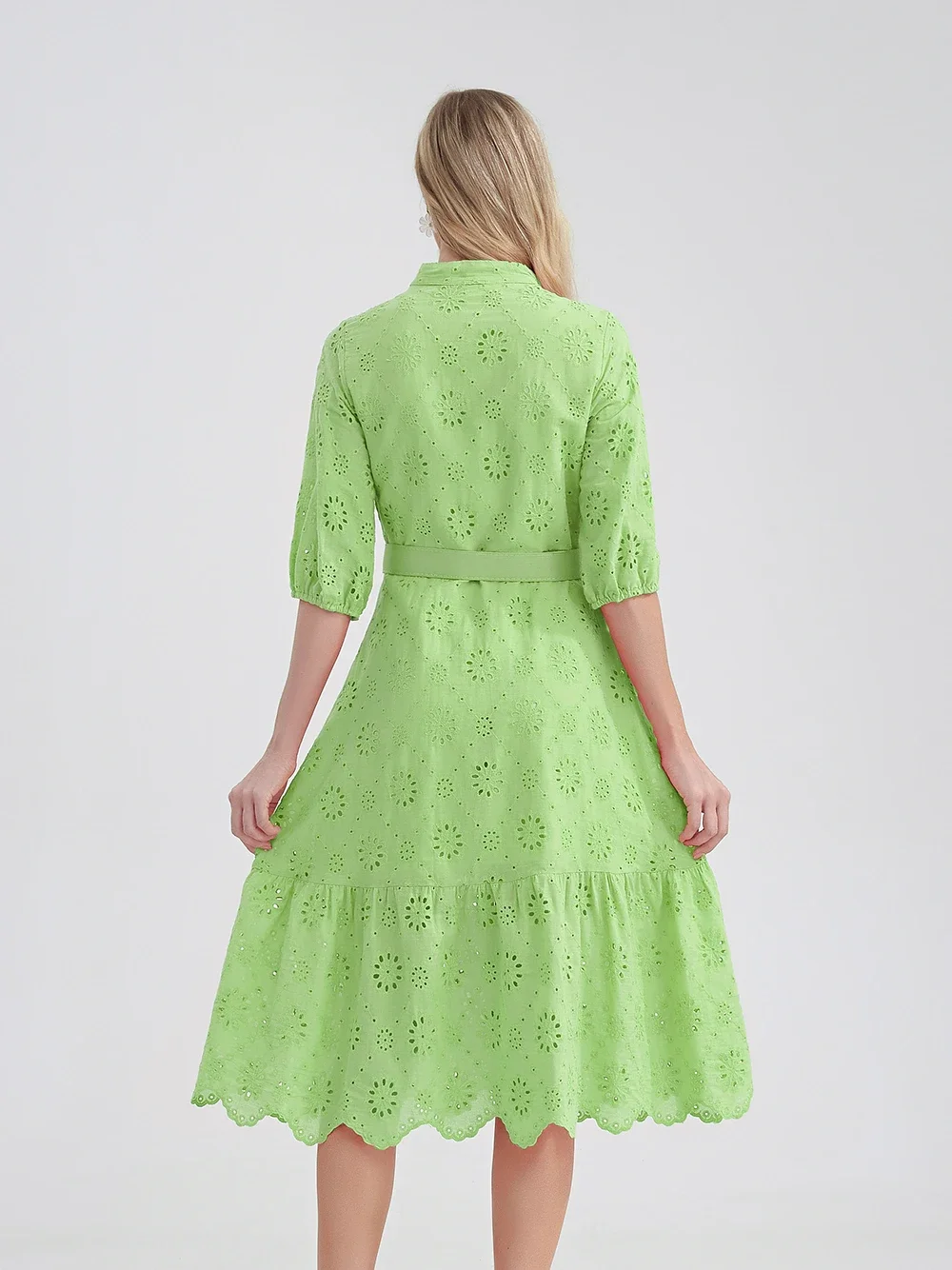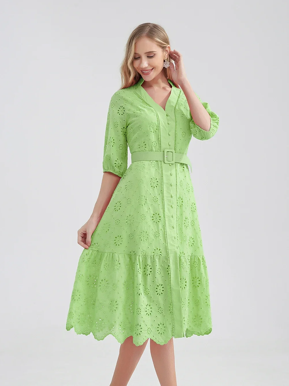 Cotton Hollow Out Summer Dress Women Holiday Perppy Casual High
