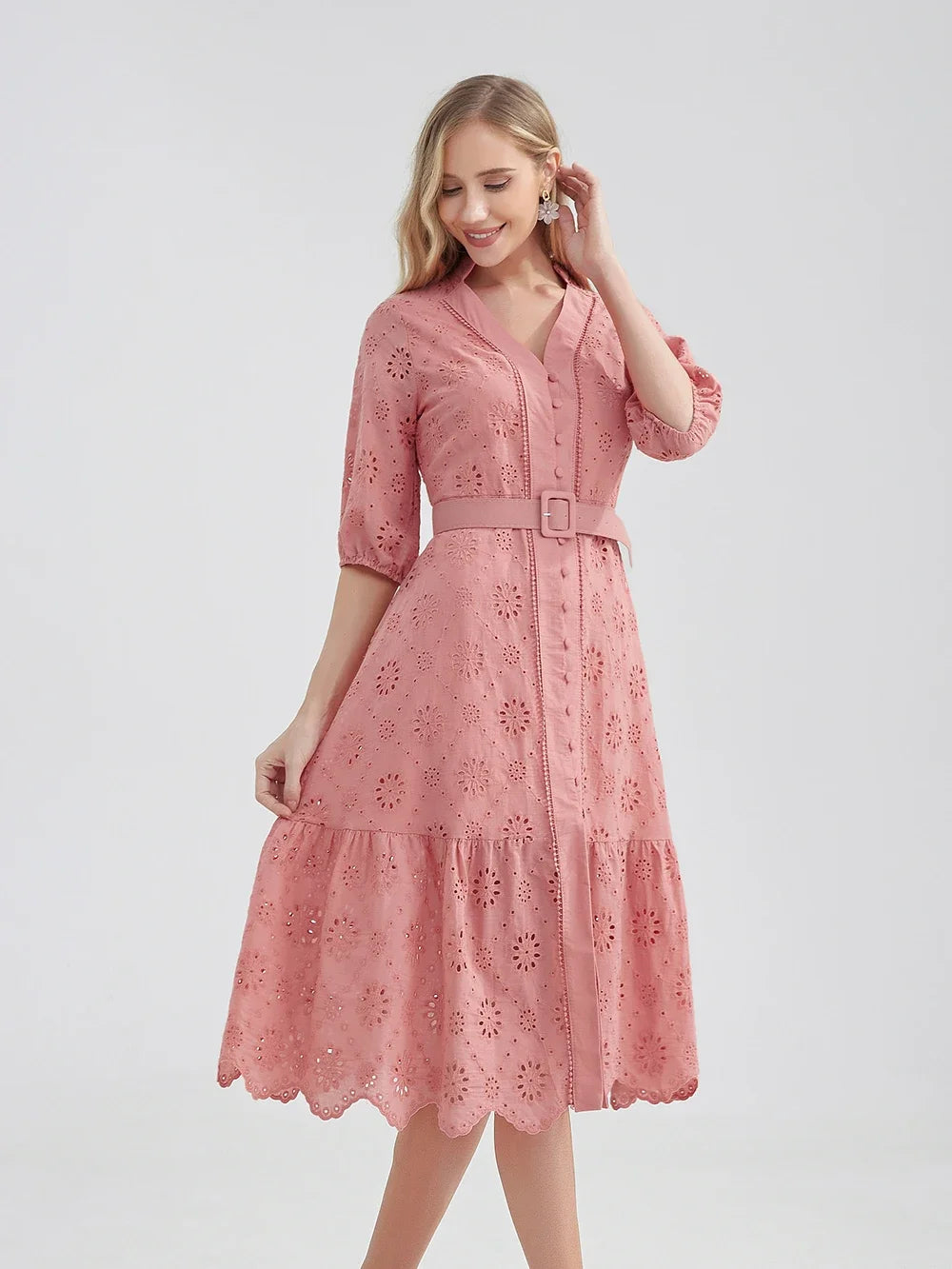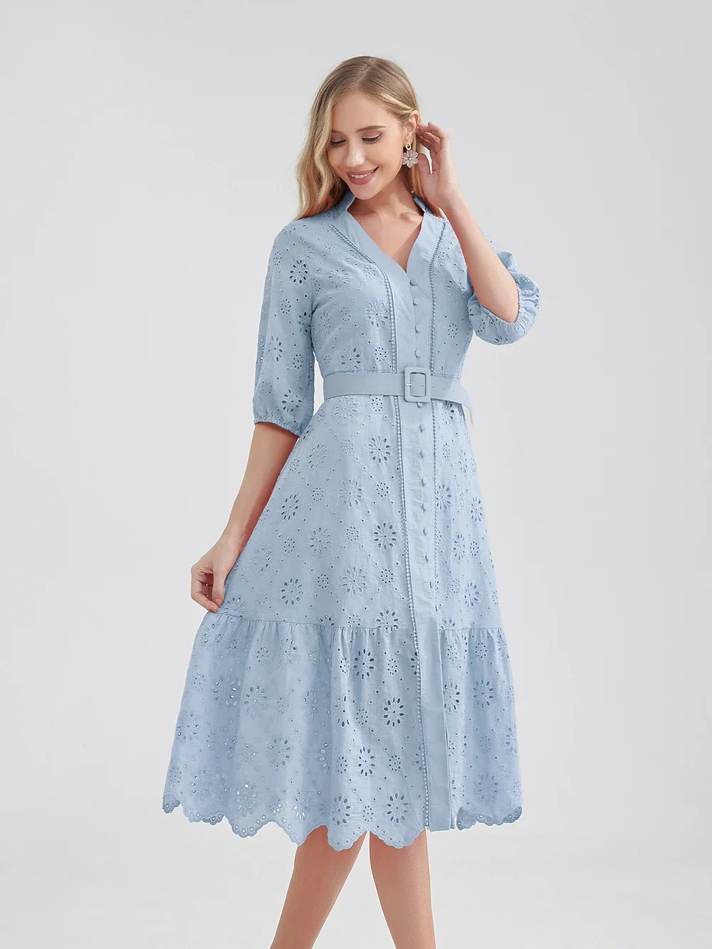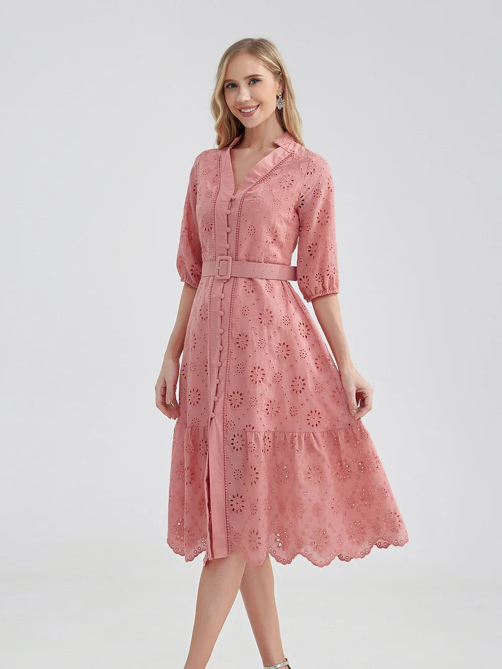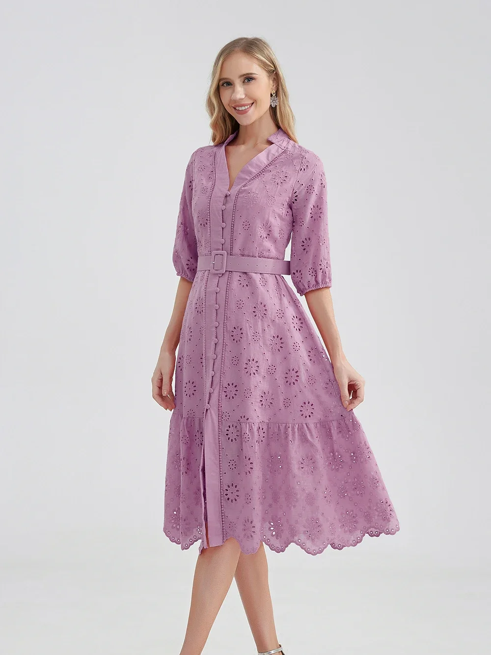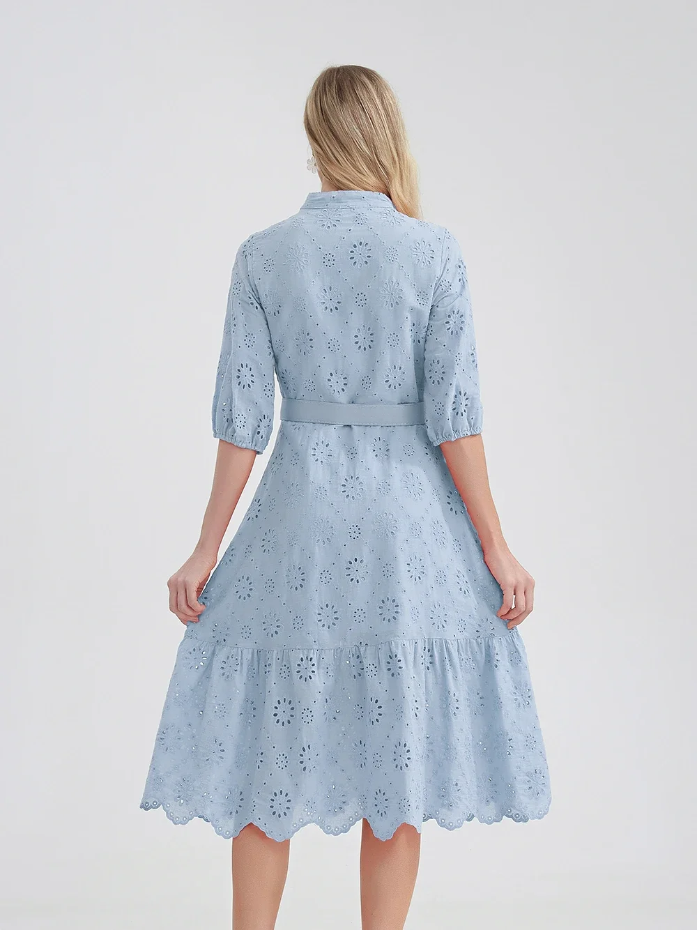Cotton Hollow Out Summer Dress Women Holiday Perppy Casual High