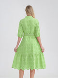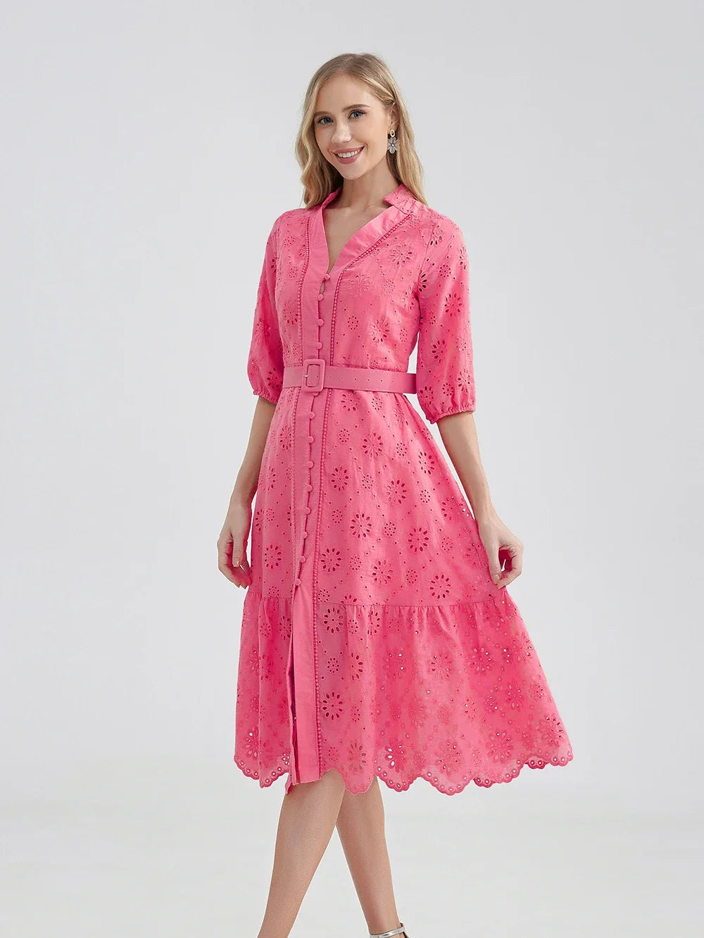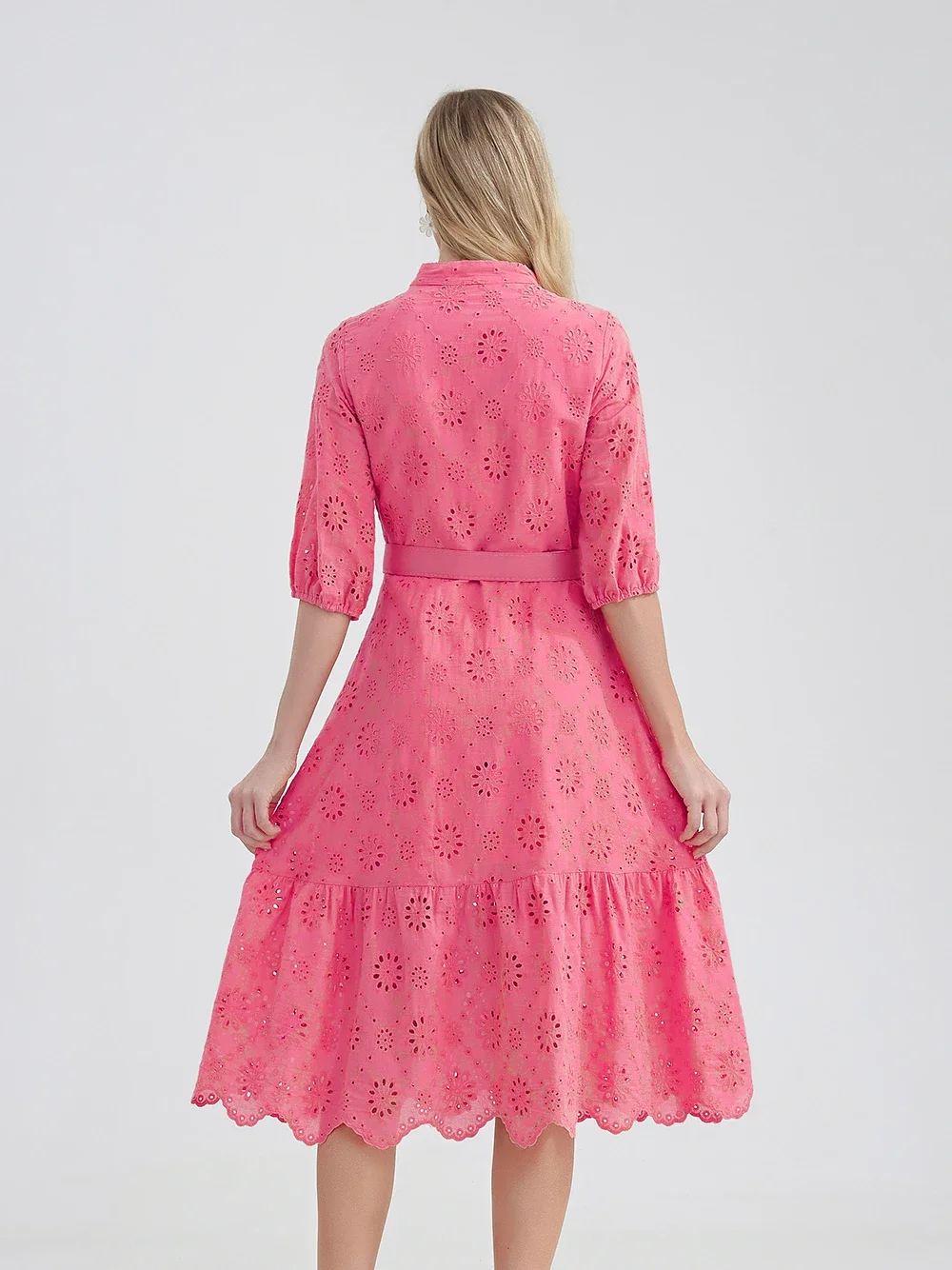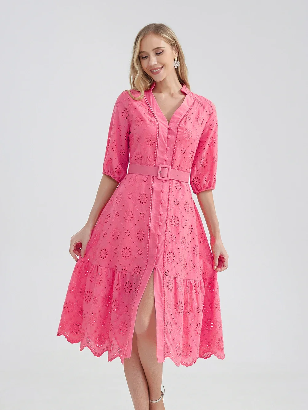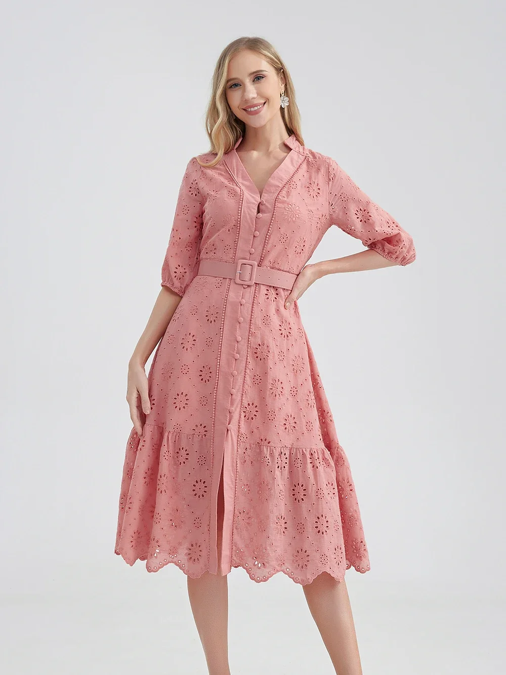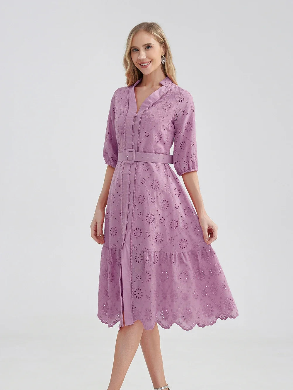 Cotton Hollow Out Summer Dress Women Holiday Perppy Casual High